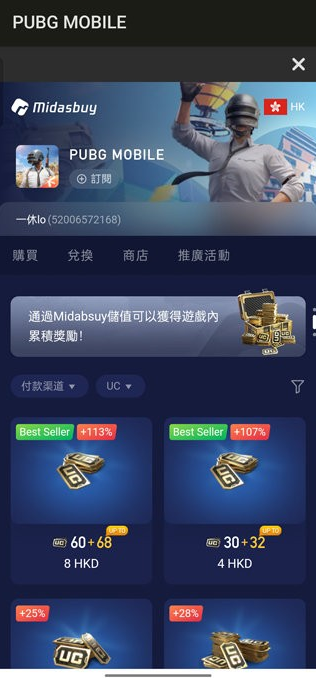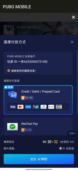 3、随后便会再次跳转至pubg mobile的商店,各位小伙伴在此处能够再次修改需要充值的面额。