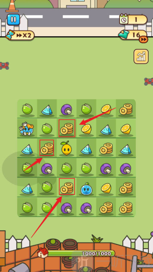 4. 挑选三个相同的图标,使其升级为高级植物,在此过程中,务必时刻留意剩余步数。