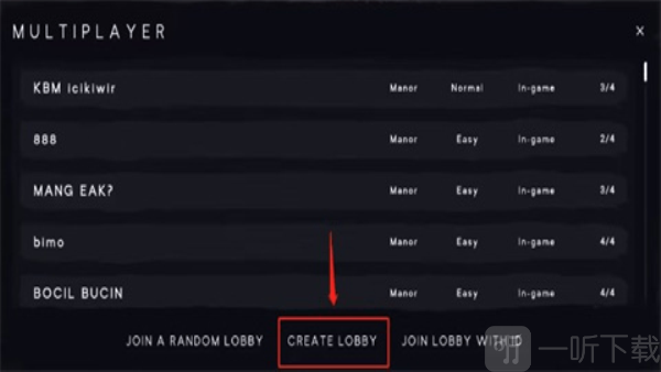3. 要是我们想和好友联机,就选择【CREATELOBBY】来创建房间。