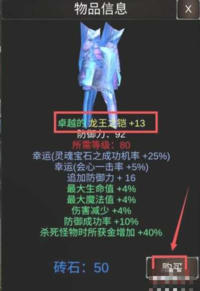 5、后期推荐购买卓越的龙王之铠,便可以轻松过关。