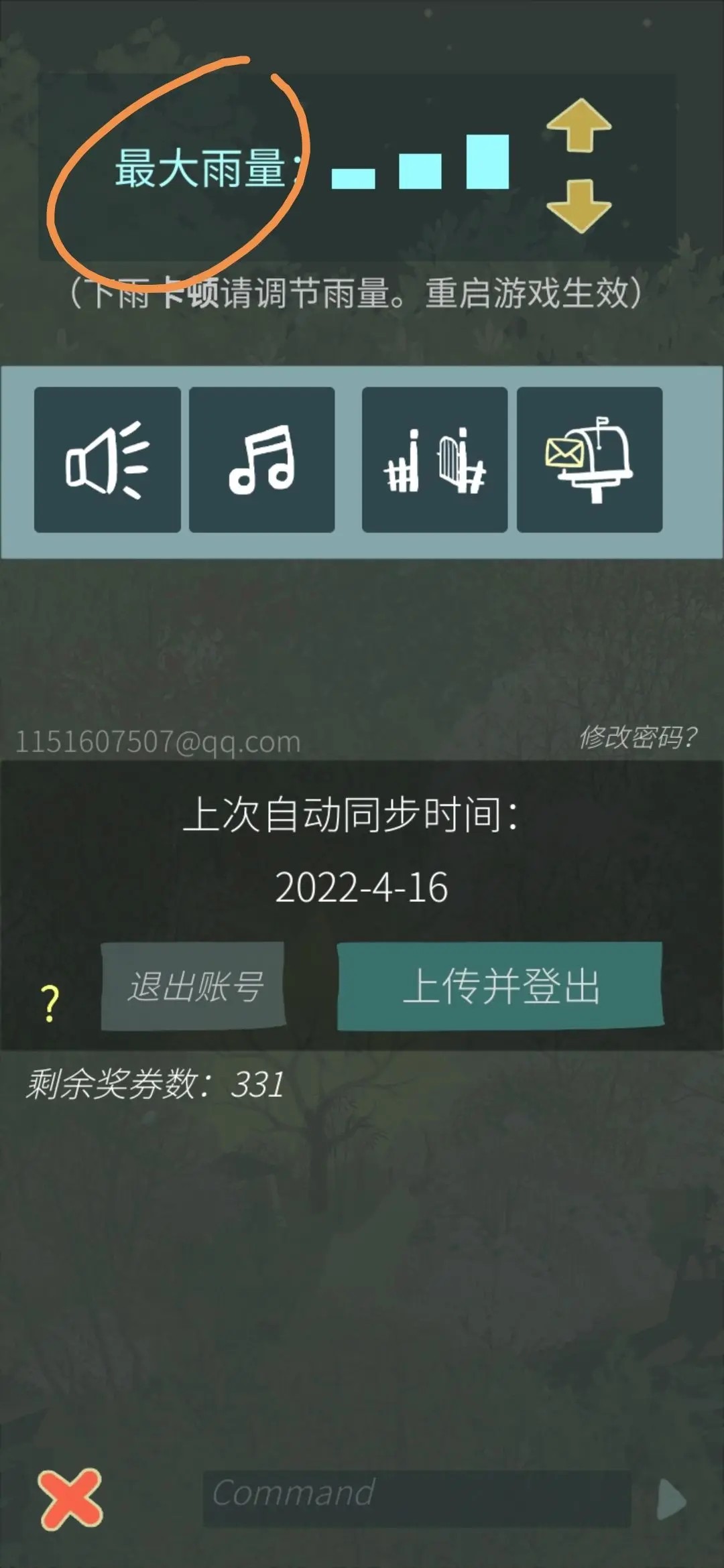 ②要是打算出门聆听鸟叫,记得在设置(点击亭子,再点击屏幕左下角的齿轮图标)中将雨量调至最大,如此便能看到数量最多的树,因为树越多,鸟叫声也就越多。