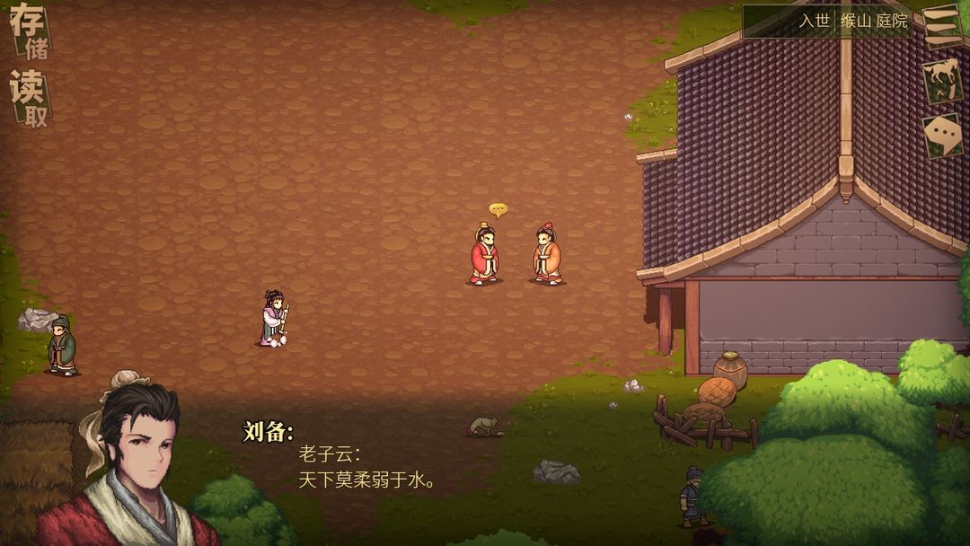 完成卢植先生的小课堂剧情后,便进入下一阶段。在此,你既可以选择在院子里与NPC自由交谈,也能直接回到屋内休息。
