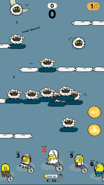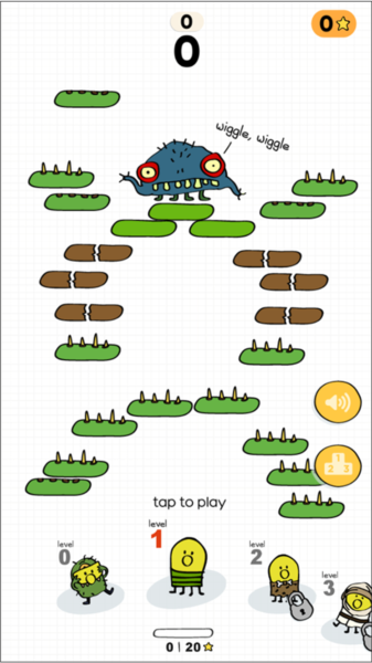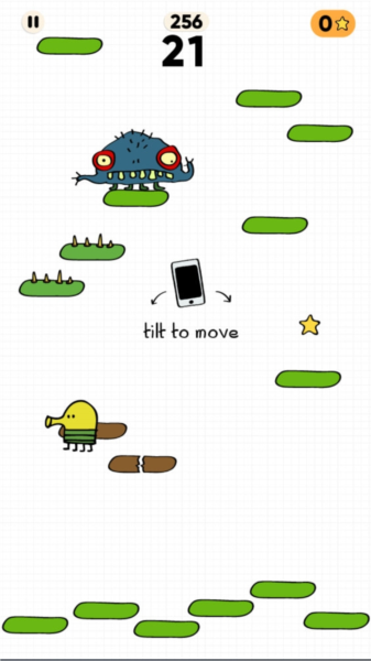 3、通过摇动手机来操控角色的跳跃动作以及移动方向,并且要持续在线跳跃。玩家务必把握好自身的跳跃节奏,虽然上方的平台是固定的,但其位置设定却是随机的。