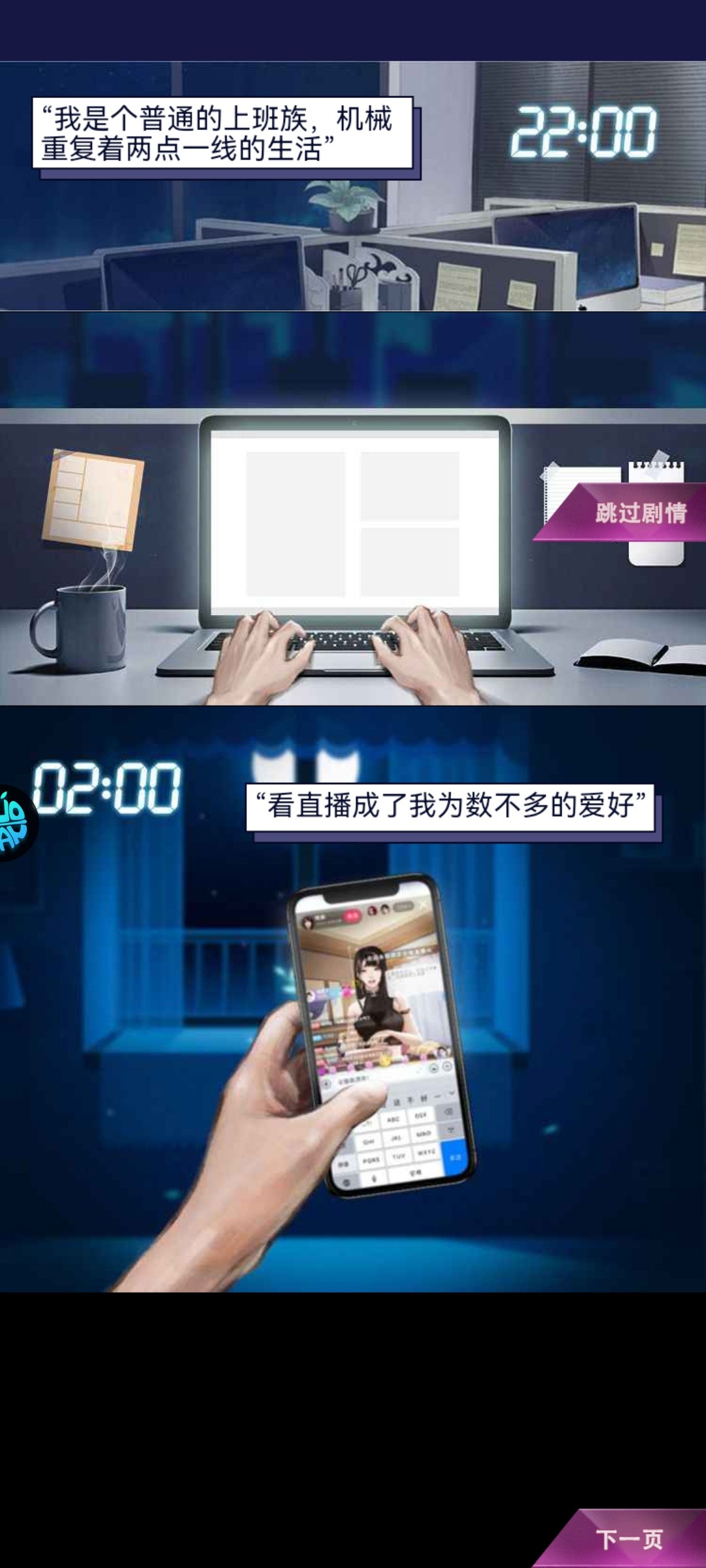 1、玩家在游戏中扮演主播,和各种美女互动。