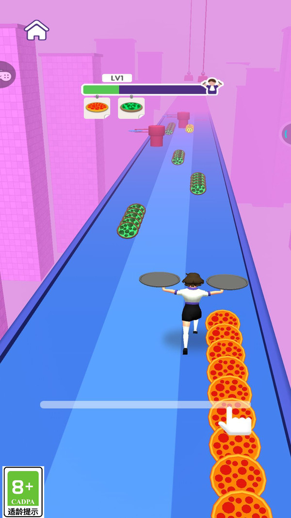 披萨收集任务:玩家在奔跑途中要收集各式各样的披萨,以此完成美食家的特别挑战,这为游戏增添了更多的趣味性与挑战性。