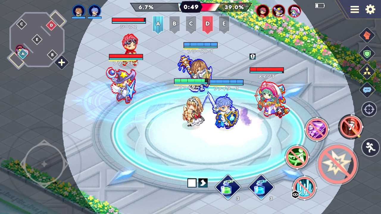 在线开展人际对战,可选择“3vs3”或“6vs6”的模式,进行时长为5分钟的战斗。
